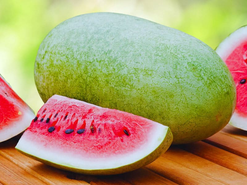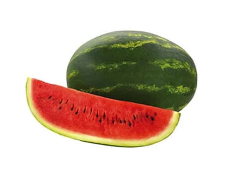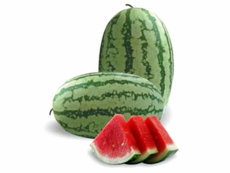 Maturity Days 75-80 From Sowing, Shape Oblong, Surface LightGreenWith Thin Dark Green Strips,Flesh Colour Dark Red, Wt.10-12kg