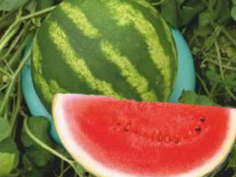 Maturity Days 85-90 From Sowing, Shape Oblong, Surface Light Green With Dark Green Strips,Flesh Colour Dark Red,Wt.8-10kg