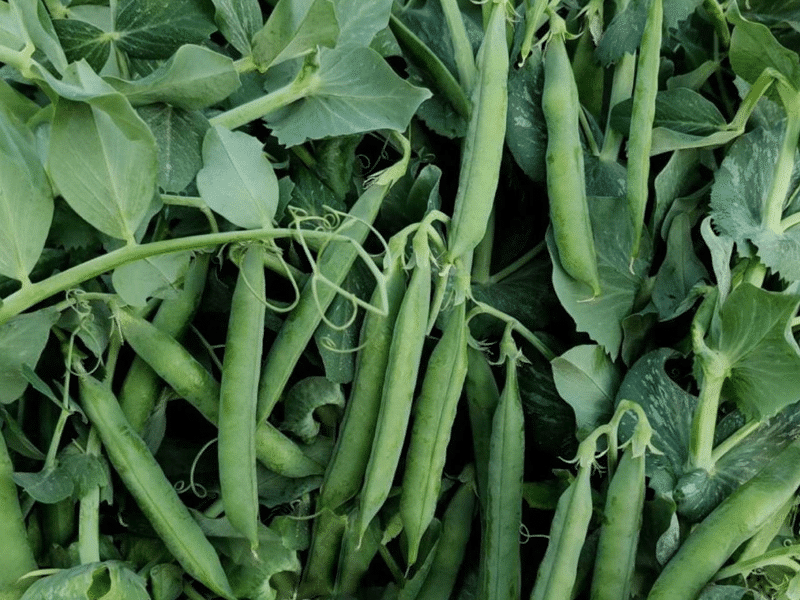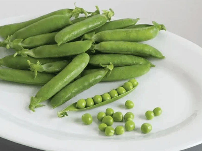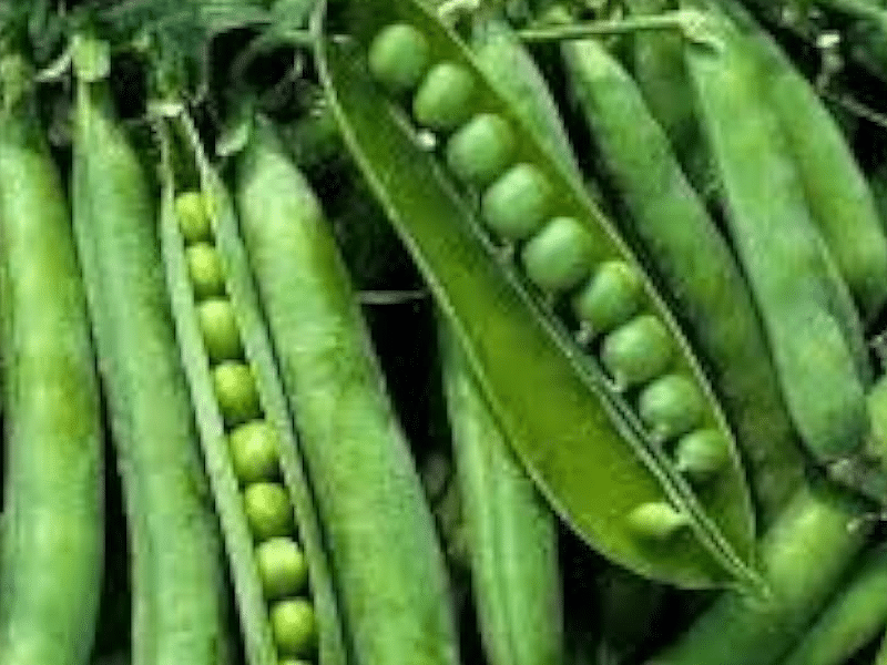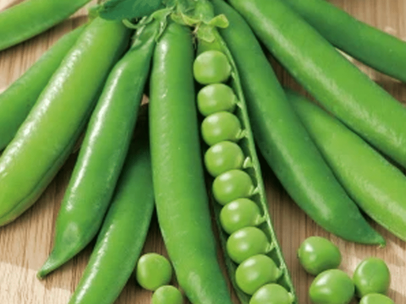 Pods: Dark Green , 8-10cm long , curved with 8-10 well wrinkled seeds